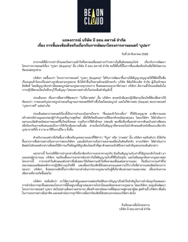 เรื่องเริ่มต้นจากการที่ Be On Cloud ประกาศร่วมงานกับพิง ลำพระเพลิง สร้าง “บุปผาราตรี มาลีรัตติกาล” ก่อนเปลี่ยนชื่อเป็น “บุปผา (Buppha The Movie)” และเปิดตัวนักแสดงชุดใหม่ อาโป ณัฐวิญญ์, เจษ เจษฎ์พิพัฒ, อิงฟ้า วราหะ, ฟรีน สโรชา และแจ๊ส ชวนชื่น ประเด็นปะทุเมื่อ ต้อม ยุทธเลิศ ออกมาโพสต์ยืนยันว่า ตนคือเจ้าของลิขสิทธิ์จักรวาล “บุปผาราตรี” แต่เพียงผู้เดียว ภาคที่ถูกต้องคือ “Buppha in New York” ที่กำลังพัฒนา พร้อมเตือนว่าใครคิดเคลมสิทธิ์ให้หยุดทันที ด้าน Be On Cloud และปอนด์ กฤษดา ยืนยันผ่าน X และแถลงการณ์ว่า ได้ทำสัญญาอนุญาตใช้ชื่อและเค้าโครงเรื่องจากบริษัทเจ้าของลิขสิทธิ์โดยตรง พร้อมหลักฐานลายลักษณ์อักษร ย้ำว่าภาพยนตร์ “บุปผา” ไม่ใช่ภาคต่อ แต่เป็นการตีความใหม่ภายใต้เงื่อนไขทางกฎหมาย ดราม่ายิ่งทวีความร้อนแรง เมื่อมีการเผยแชทสนทนาอ้างว่า “พิงถูกปลดจากการกำกับ” ทำให้เกิดการโต้กลับระหว่างยุทธเลิศ, พิง และบัญชี “ผู้กำกับเลว” ที่พร้อมท้าดวลบนรายการ “โหนกระแส” หากจำเป็น ขณะที่พิงเองก็ออกมาแสดงความเสียใจต่อสถานการณ์ พร้อมยืนยันว่าอยากโฟกัสที่การทำงาน